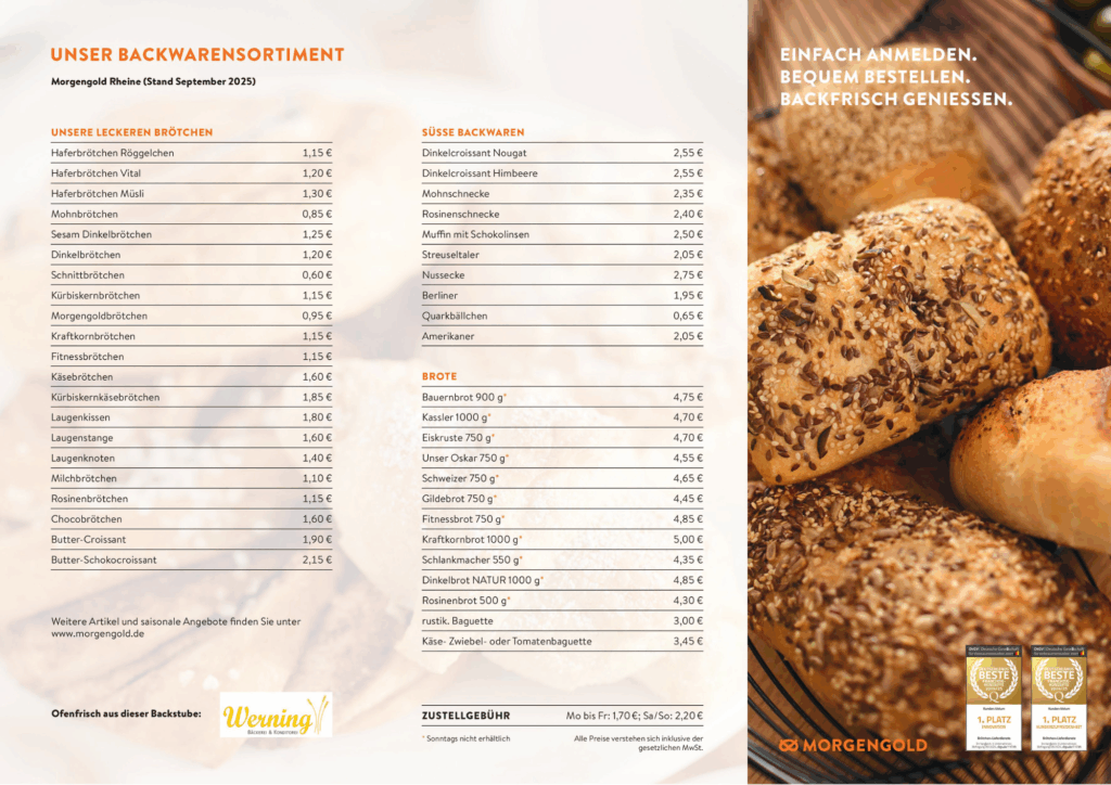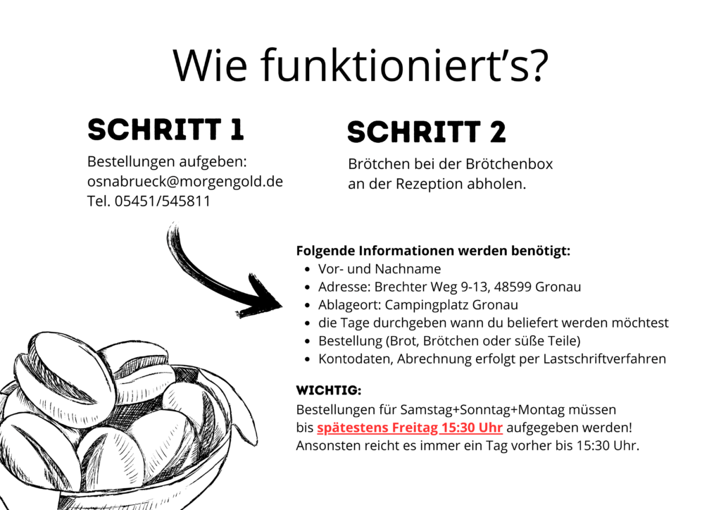 – Bestellung (Brot, Brötchen oder süße Teile)