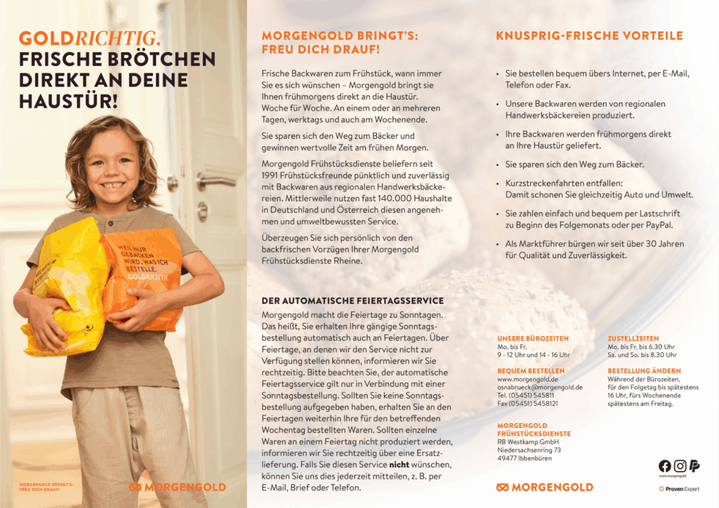 Wichtig: Bestellungen für Samstag-Montag müssen Freitag bis 15:30 Uhr aufgegeben werden.